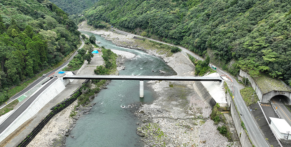 - 上部工(施工完了)、左岸擁壁(施工中)