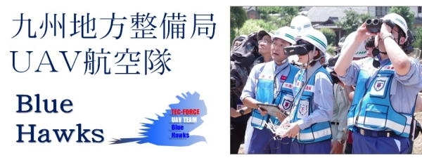 その後平成26年度より安全管理のためのマニュアル、4段階の内部資格制度を整備しUAV航空隊「BlueHawks」として発足しました。名称はTEC-FORCEの制服である青色とUAVによる鷹の目線からの調査ができるということが由来です。