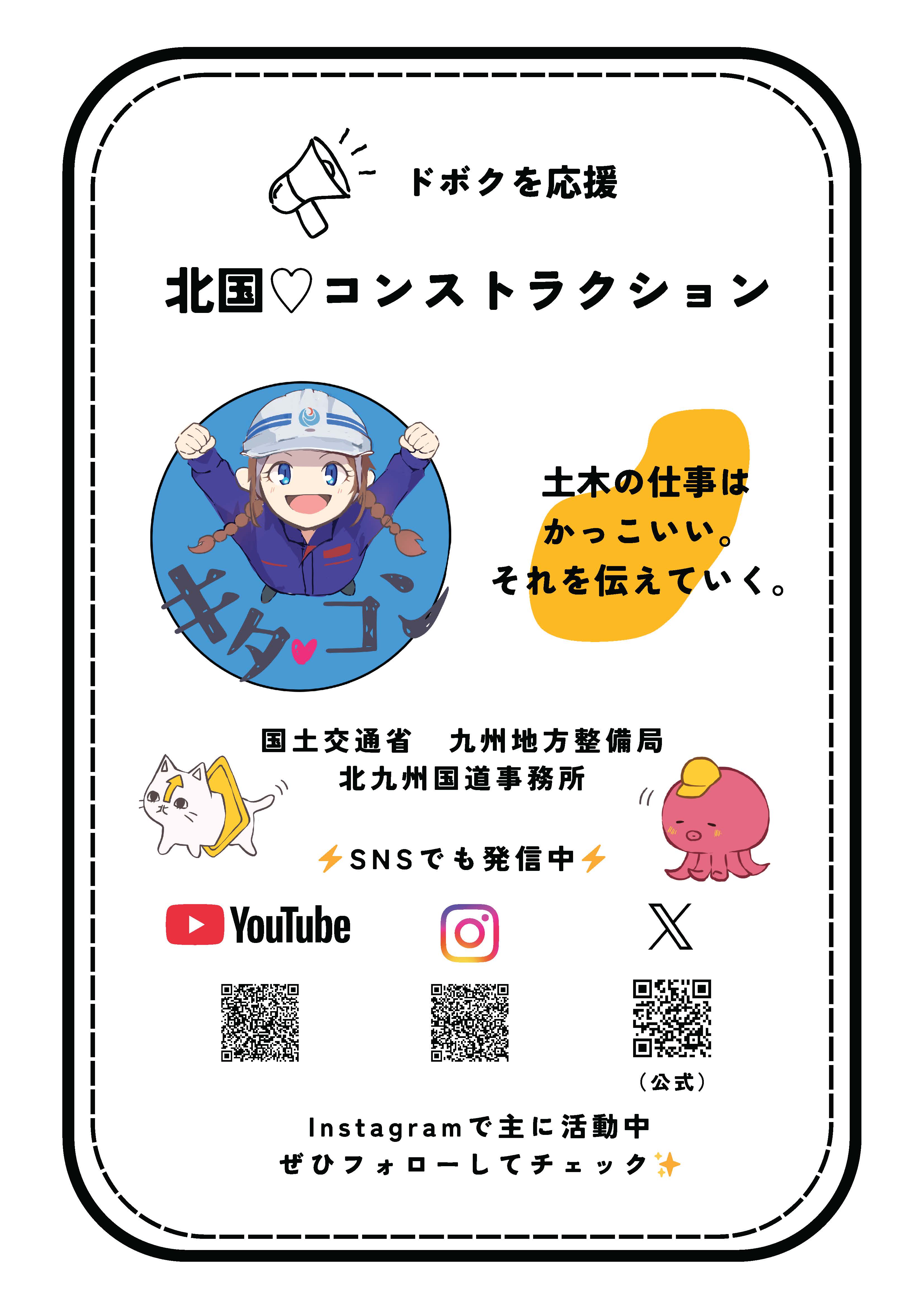 北九州国道事務所広報チームから、土木を応援するSNSアカウント「北国♡コンストラクション」が誕生しました。
