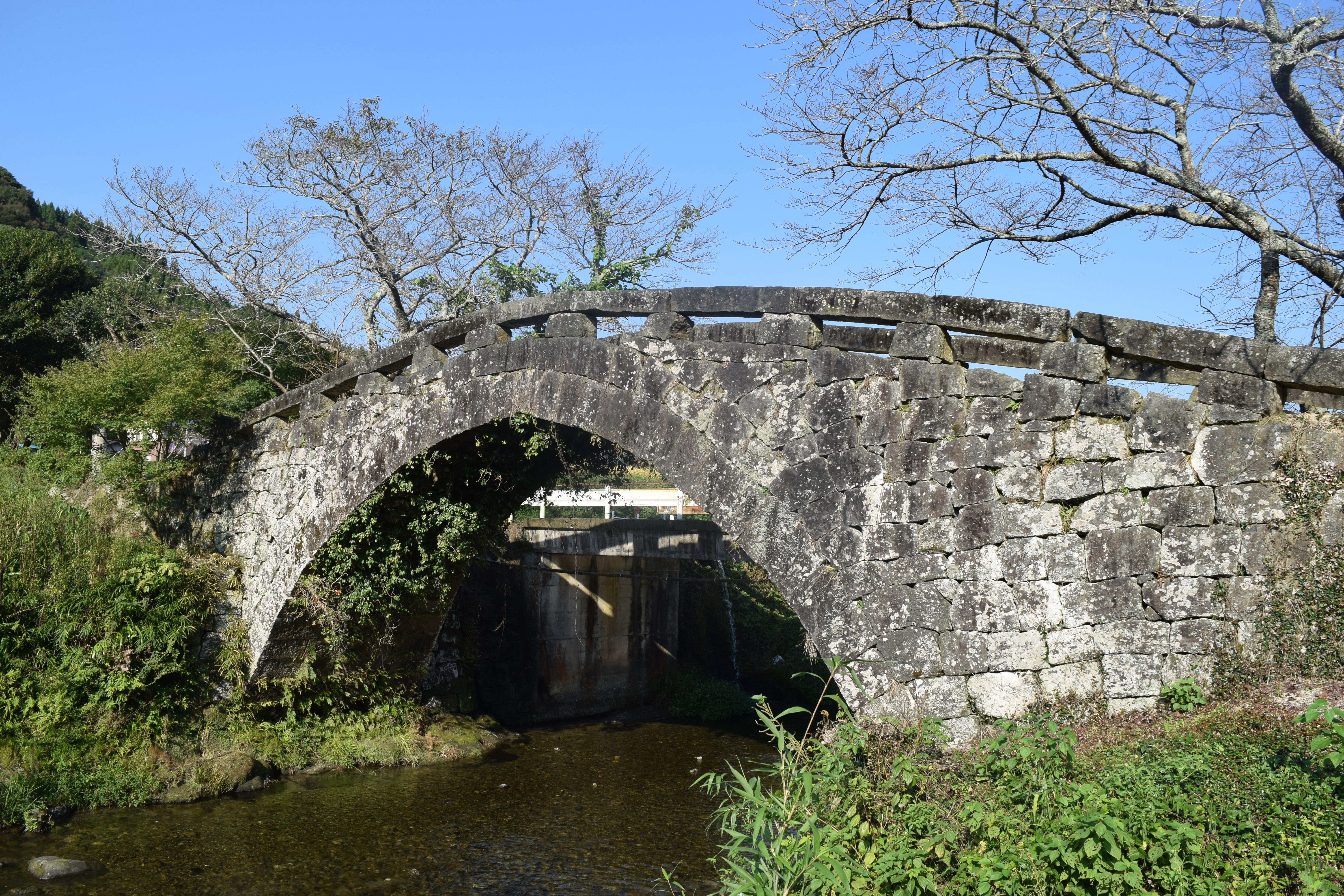 その美しい半円形の石橋群は、江戸末期の日本土木技術の最高傑作といわれています。
