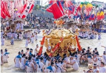 | 竹炭による河川の水質浄化 | 「風治八幡宮川渡り神幸祭」(番田河原) |