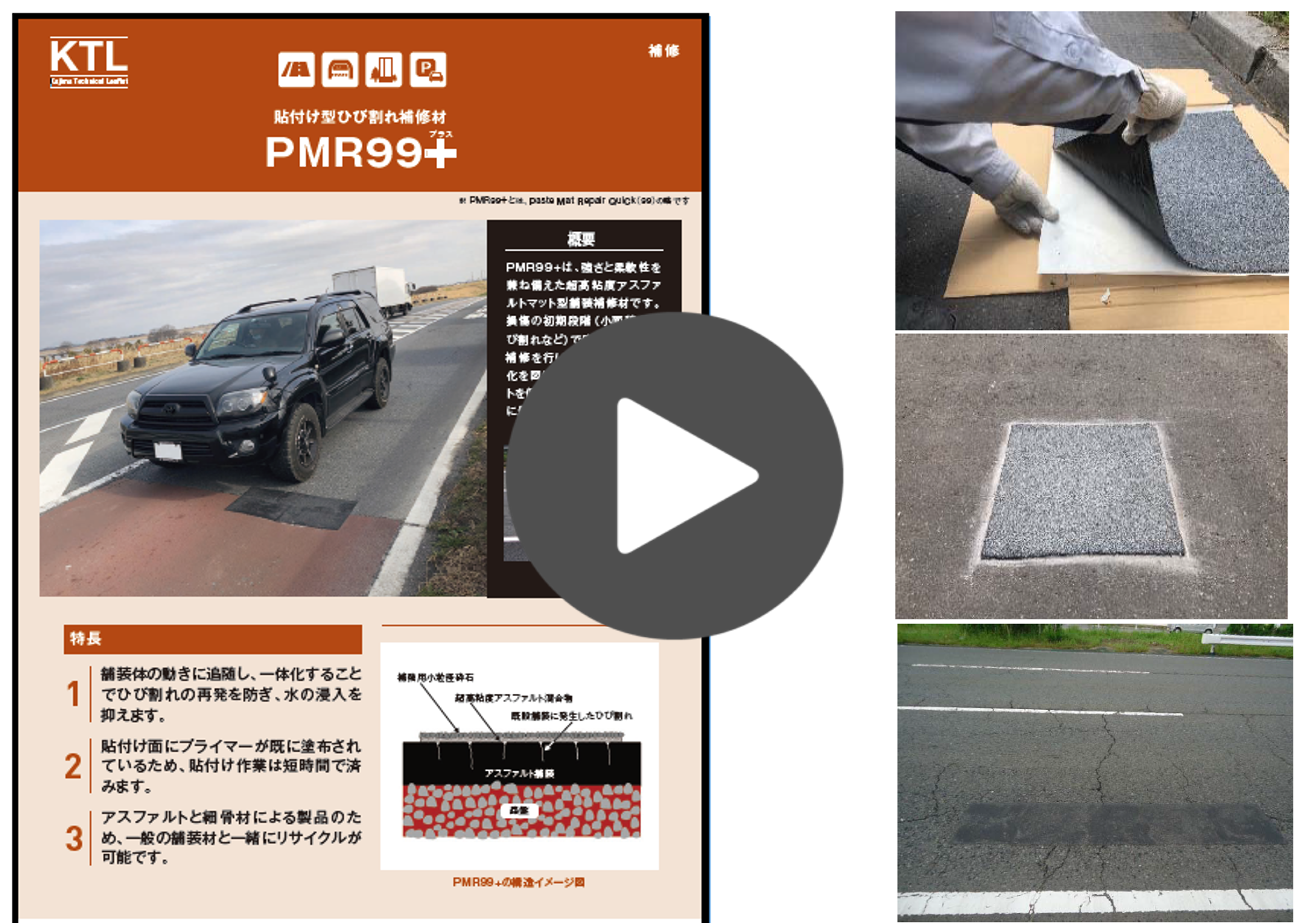 PMR99+:強さと柔軟性を兼ね備えた超高粘度アスファルトを使用したマット型舗装補修材:鹿島道路(株) |