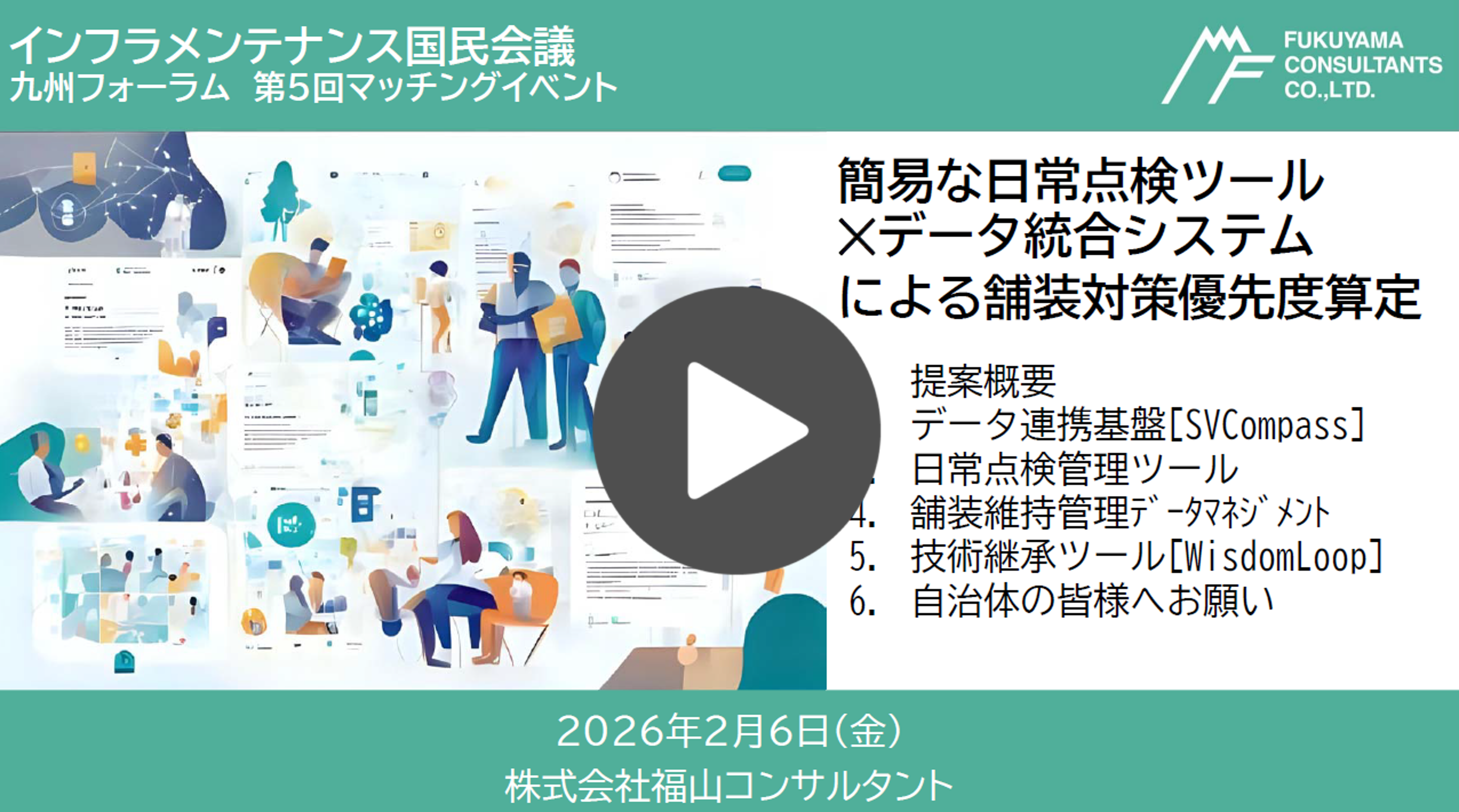 簡易な日常点検ツールX データ統合システムによる舗装対策優先度算定:(株)福山コンサルタント |