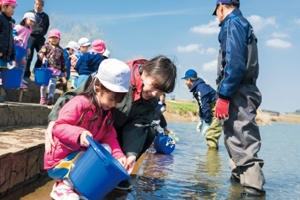 豊かな自然環境をもつ河川空間は、地域の人々が集い、憩いの場として愛されている。環境に優しい川づくりが進めている。