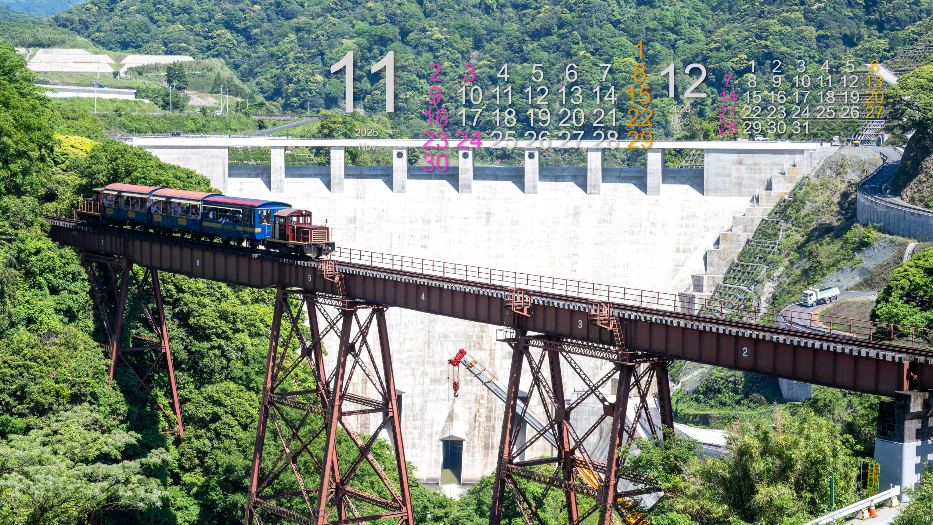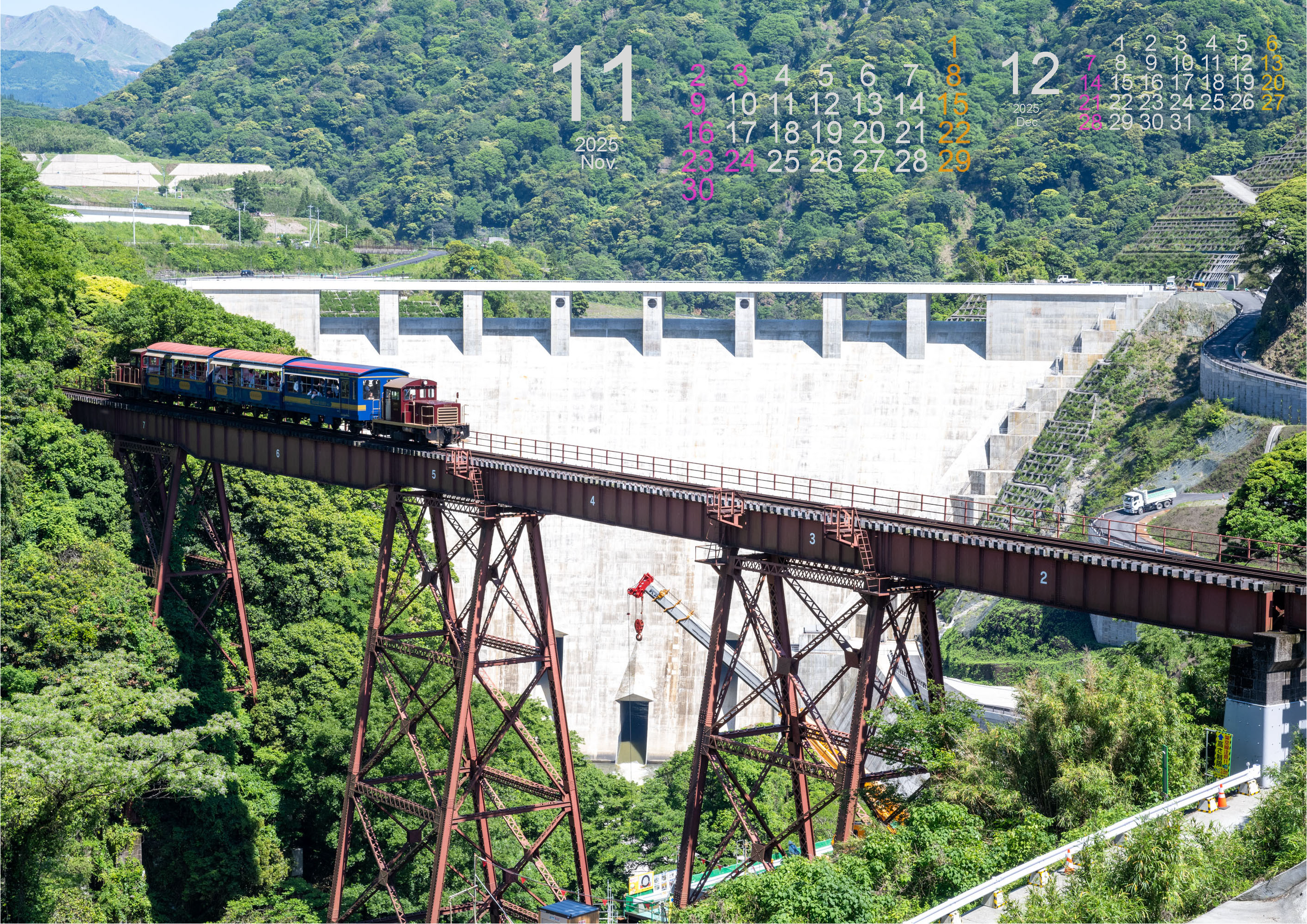 そんな、阿蘇立野ダムの見所を紹介したいと思い、阿蘇立野ダムカレンダーを作成しましたので、ぜひ、使用してみてください!