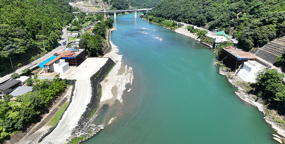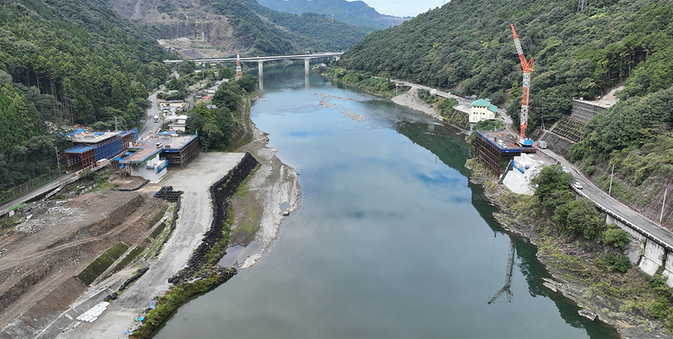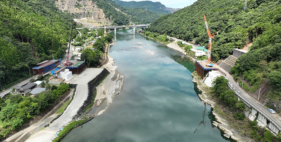 - 橋台(A1)掘削中:橋台(A2)土留・仮締切施工中